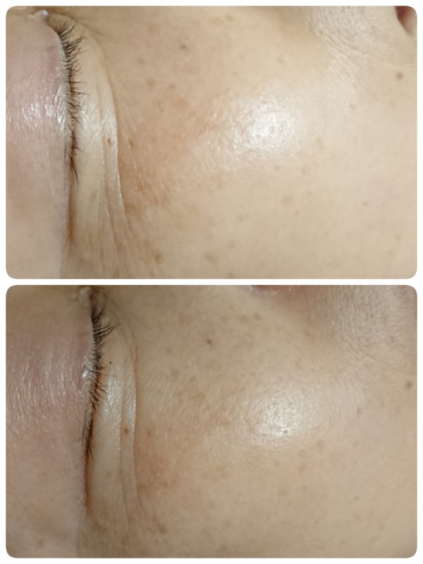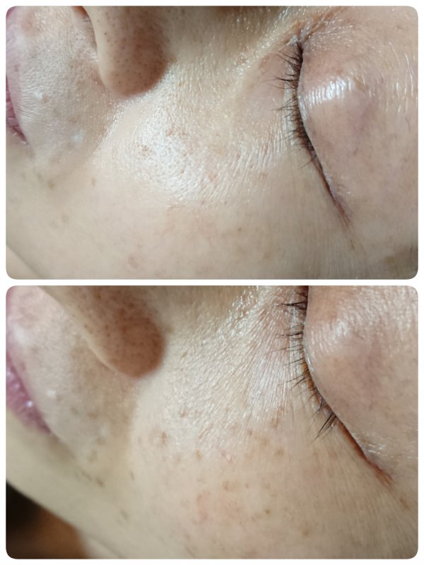 色ツヤ、ハリがでて、クスミも緩和し、シミも薄くなっていますね。